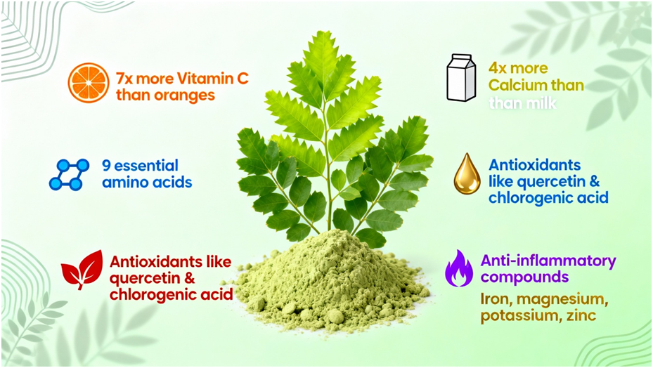 Moringa is known to help regulate glucose naturally—beneficial for diabetics.