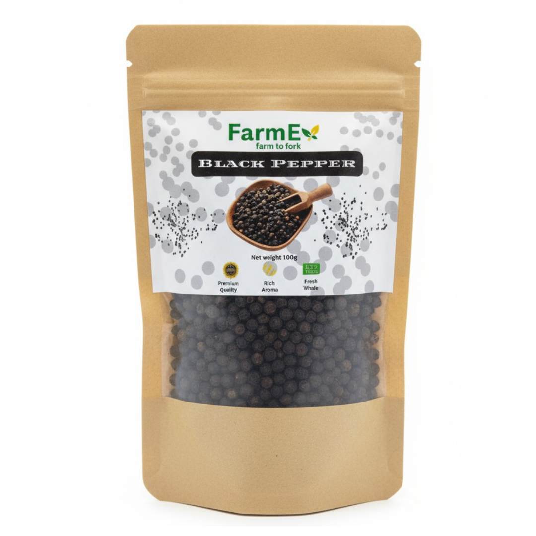 Premium black pepper, handpicked for bold flavor and natural aroma. A rich source of antioxidants that enhances taste and supports wellness.